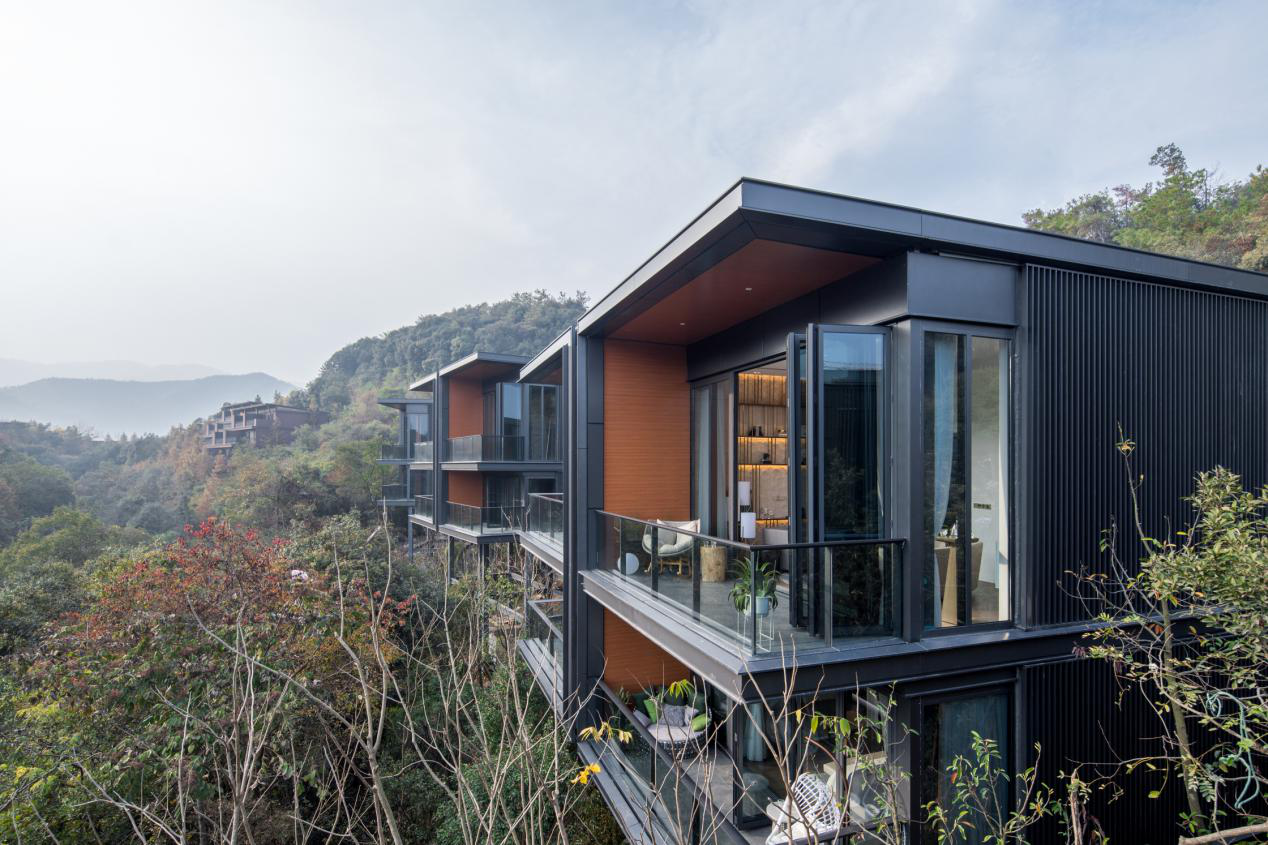 山镜VILLA是莫干山景区内唯一可售70年产权不动产。现代极简风格别墅以革新姿态,首次整合了杭州绿城设计院gad设计总监蒋愈、浙江绿城景观沈益人及唐忠汉、吴清义、钟志军等国内外的设计大师,以国际视野和现代理念,寻求自然资源、奢华居住与当代生活方式的共鸣。山镜VILLA提倡自由、开放的布局,将大自然的光影引入,营造出将山镜、湖景、天空框进室内的绝佳空间,让居者归家时,身心已在自然山野间尽情舒展。